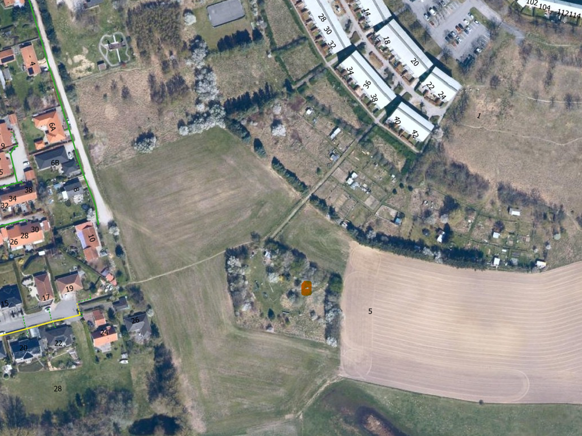 Herunder kan du se placeringen af prøveboringen, det er den orange cirkel, midt i hundelegepladsen.