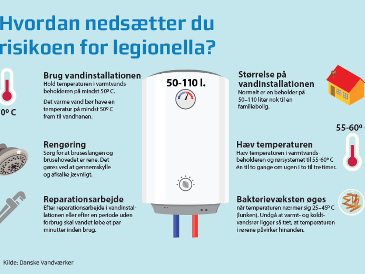 - Hold temperaturen i varmtvandsbeholderen på 55-60 grader